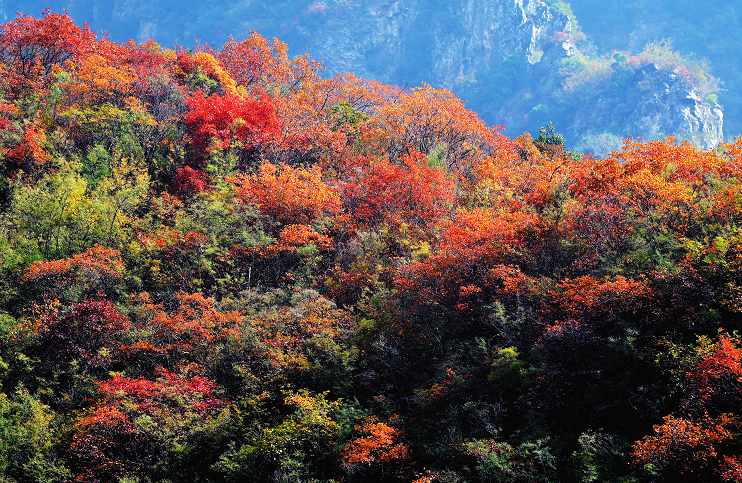 枫叶燃作绯红,黄栌晕成橘红,