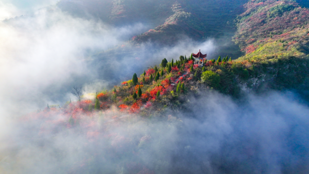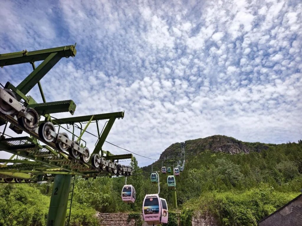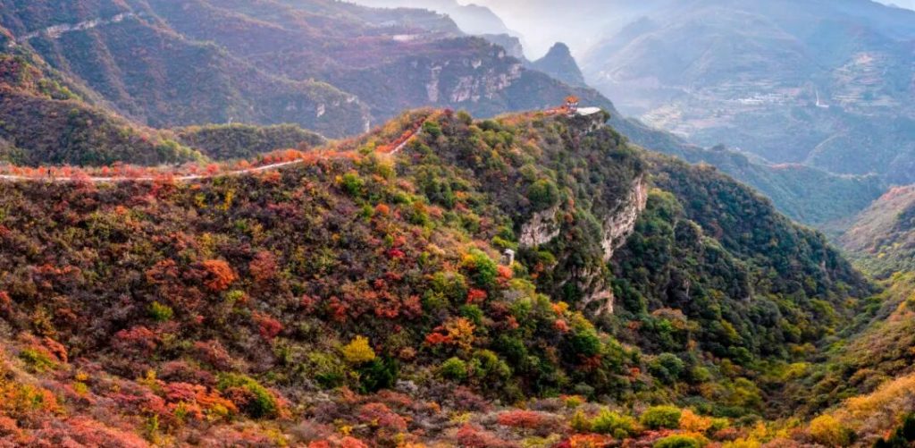乘坐我们的高空索道,轻松直达山顶。随着缆车缓缓上升,你的视野逐渐开阔,脚下是如波涛般翻滚的红叶海洋,远处是壮丽的太行山脉与蜿蜒黄河。这是一种“会当凌绝顶”的震撼,秋日的壮美山河,在你眼前铺陈开来。