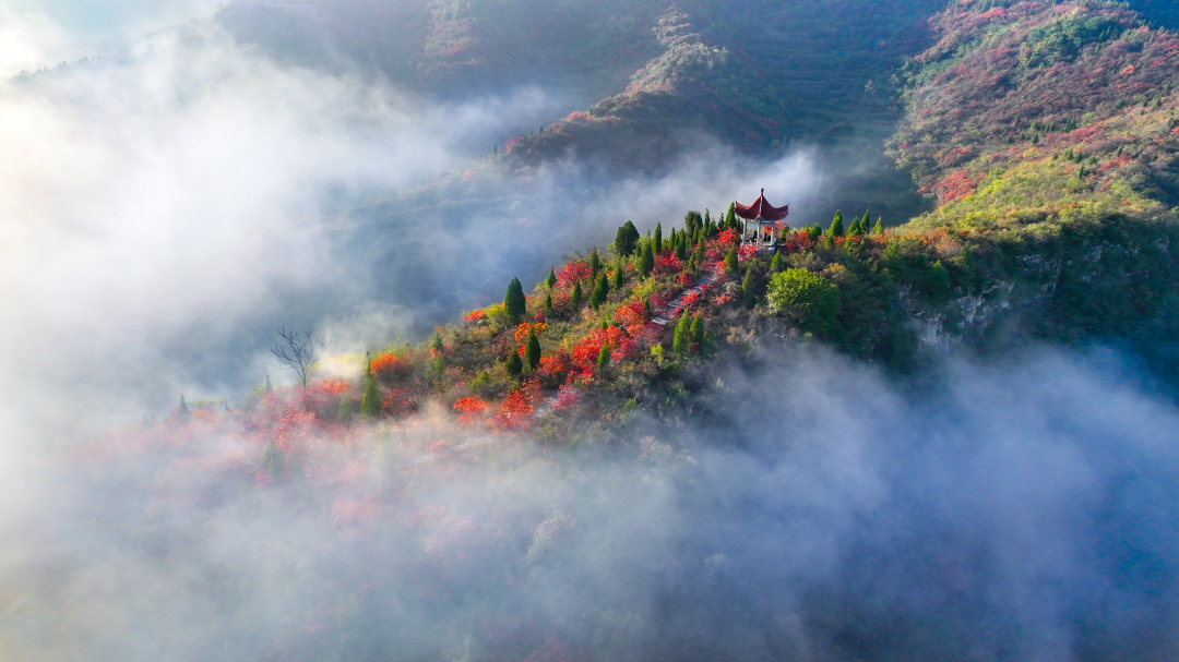 根据景区最新观测,荆紫仙山的红叶变色率已达到60%!