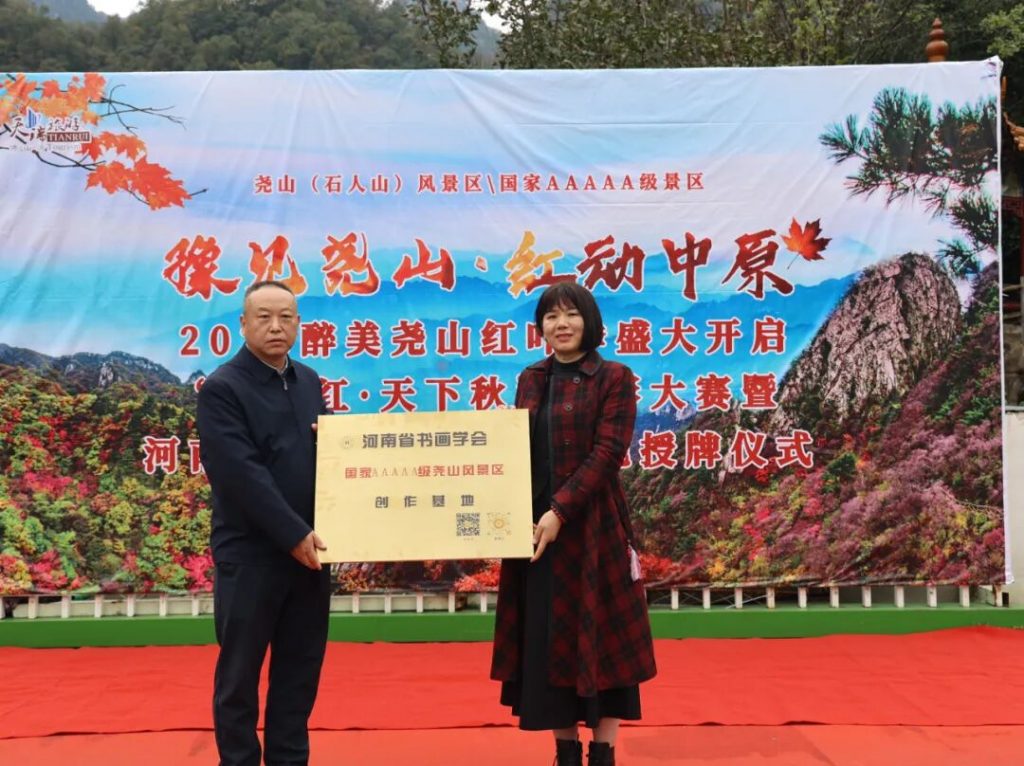 有河南省书画学会主席徐秋月给天瑞旅游集团尧山风景区授牌并致辞!
