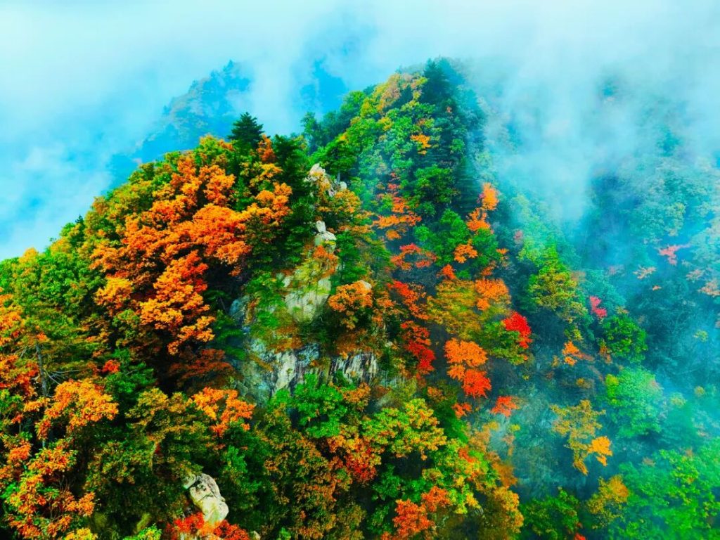 核心赏景点:青龙背(红绸般的红叶漫山舞)、玉皇顶(俯瞰万峰秋意浓)、九曲瀑布(红叶映流水,随手出大片)