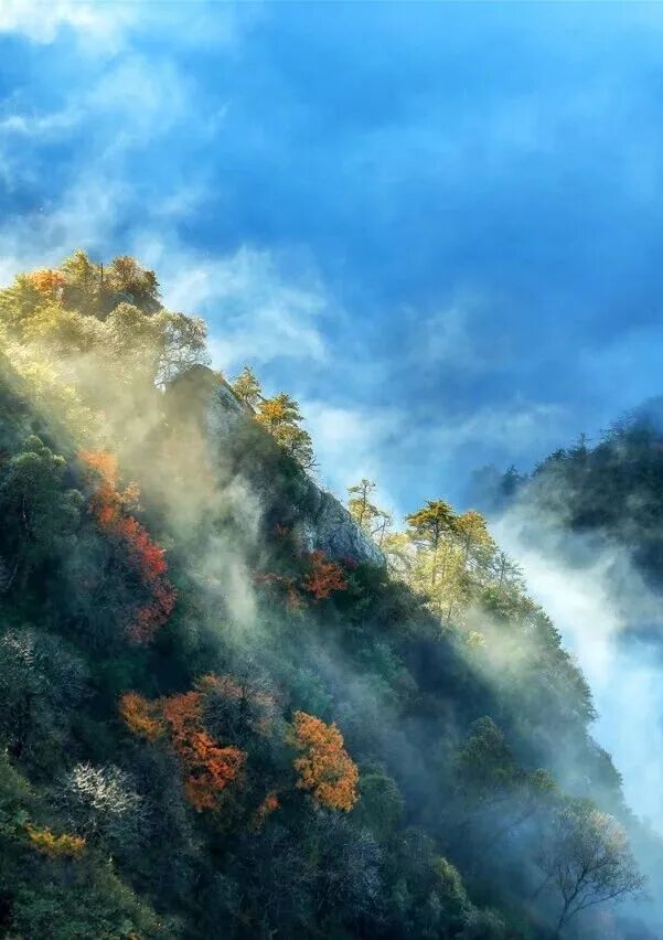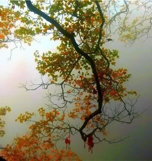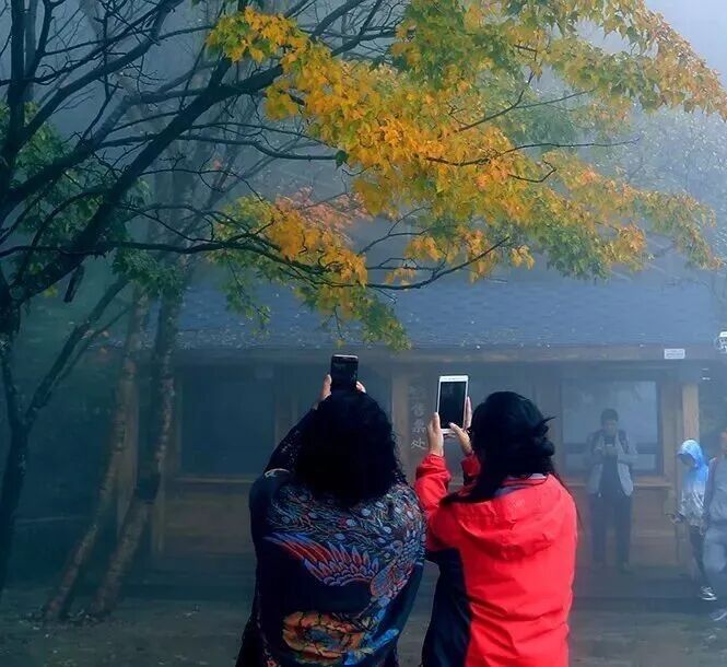 您或许会担心,雾气会影响红叶的观赏?请放心,它只是换了一种方式美丽。雨雾中的红叶,褪去了晴日里的张扬,变得含蓄而朦胧。挂在叶尖的雨滴,如同镶嵌的钻石;色彩交织晕染,像被大师轻轻晕染的油画,别有一番婉约风韵。