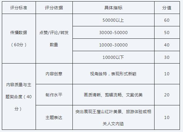 (二)游客群体采用“数据量化+专业评审”相结合的方式,总分100分(以单一平台单条内容的最高数据为准)。具体标准如下: