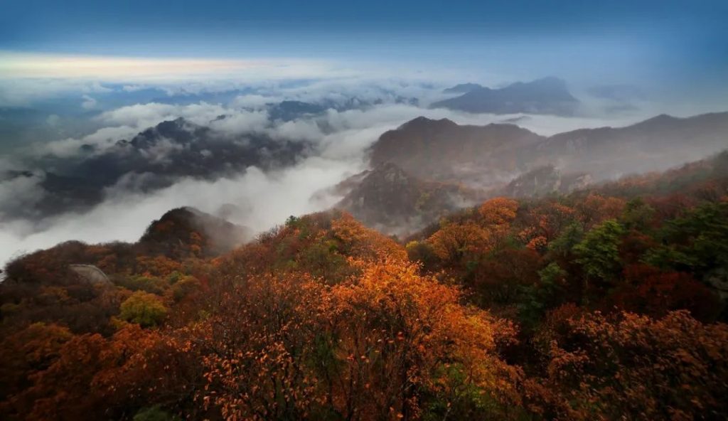 站在玉皇顶远眺,伏牛山脉的轮廓在澄澈的空气中清晰可见,山风掠过树梢,带着草木与泥土的干燥气息,是独属于秋末的清爽。