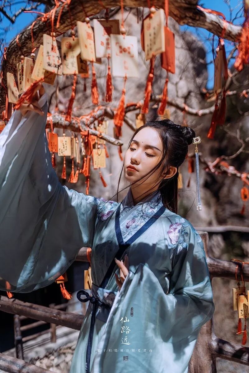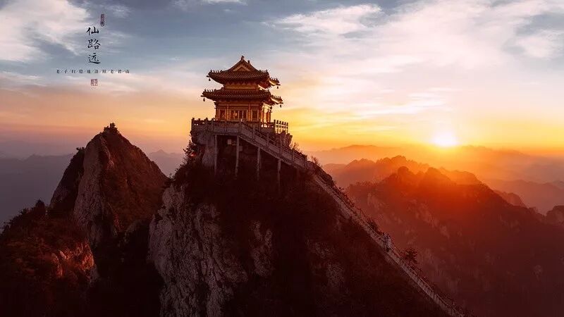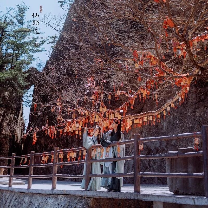 “和@闺蜜 穿汉服闯老君山,在玉皇顶阶梯等一场日落:
