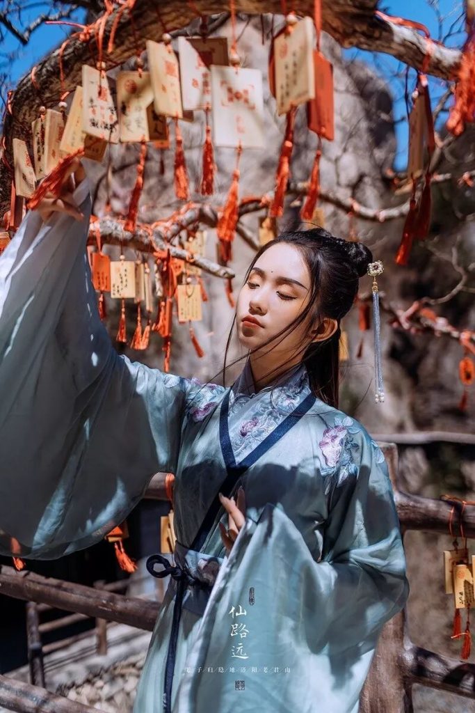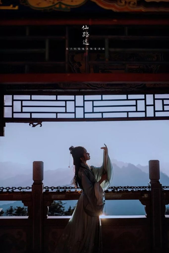 摸一摸栈道旁的“老子悟道”奇石,拍侧脸特写(手撑头+望向远方),滤镜用醒图「青橙」+15,秒变山系清冷感。