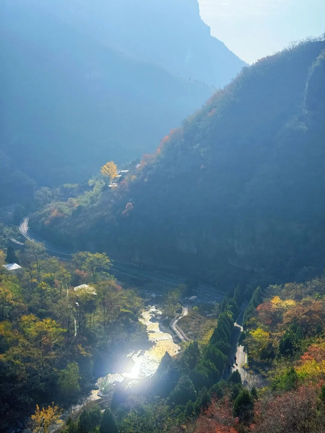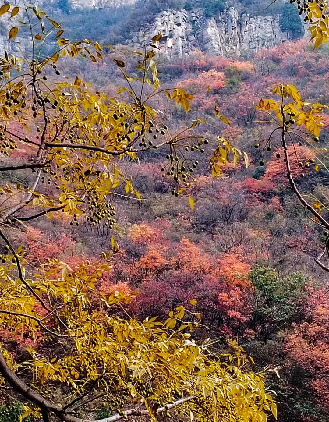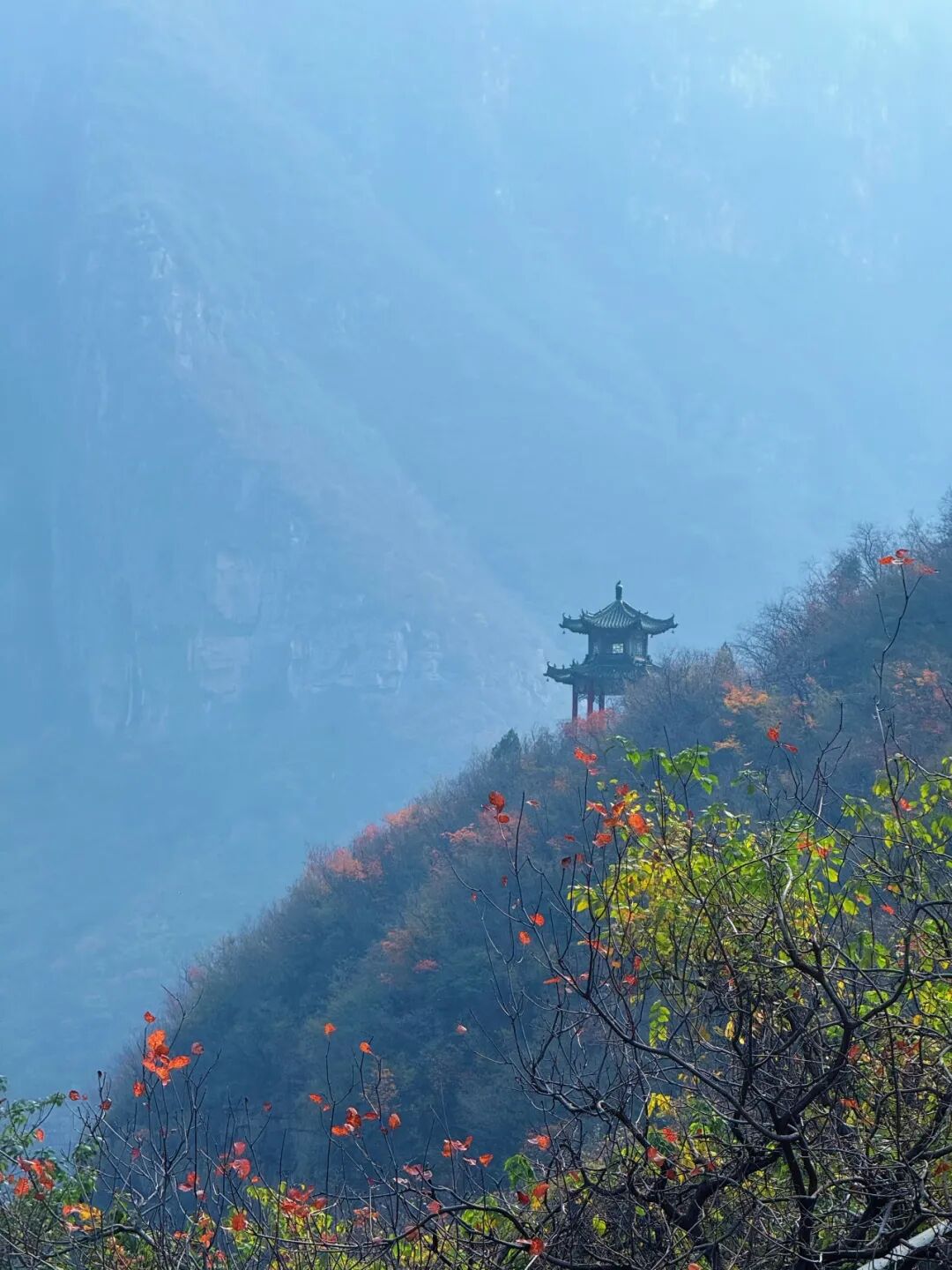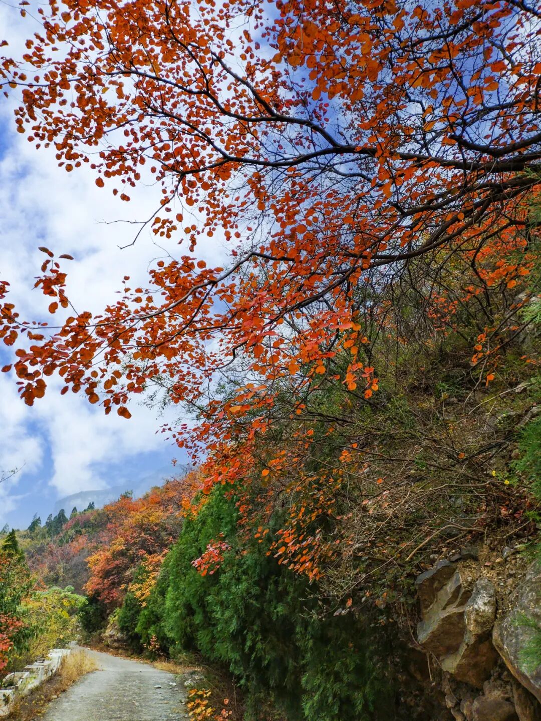 可能有人会问:都初冬了,秋景还能有多少看头?但只有真正来过的人才知道,降温后的神农山,藏着秋末最特别的“余韵”。 清晨的山雾还没散尽时,彩林像是被裹进了一层薄纱里。 阳光慢慢爬上山头,穿过交错的枝桠,把红叶照得像燃烧的火焰,把黄叶映得像鎏金的碎片,连山间的石阶都沾了几分暖色调。 走在步道上,脚下是“咯吱咯吱”响的落叶,抬头是被彩林染透的天空,深吸一口空气,满是草木的清冽和阳光的暖意,比深秋的浓墨重彩多了几分灵动,又比寒冬的萧瑟多了几分温柔。 湛蓝的天空当背景,漫山的彩林像打翻了调色盘,从山脚到紫金顶,一层红、一层黄、一层绿,层层叠叠铺展开来。 随便举起手机,不用找角度、不用加滤镜,定格的都是能刷爆朋友圈的“秋日大片”——毕竟,这种“半秋半冬”的独特景致,一年里也就这几天能见到。 但必须提醒大家:根据小编的实地观察,受持续降温影响,目前挂在枝头的彩叶只剩三成左右,最多还能维持一周。 今天看到的红叶,可能明天风一吹就落了;此刻路过的彩林,下周再来或许就只剩光秃秃的枝桠。 想和秋天好好告个别,想留住这抹年末最暖的色彩,真的不能再等了。 每一片落叶都在说“再见”,