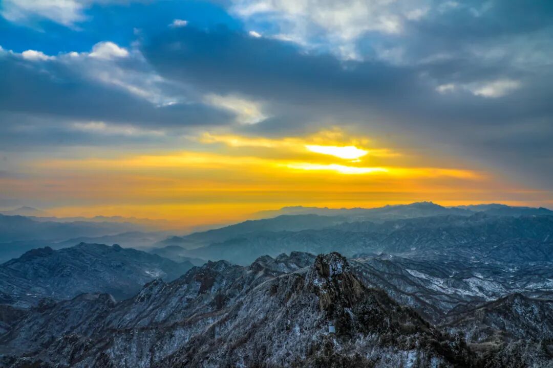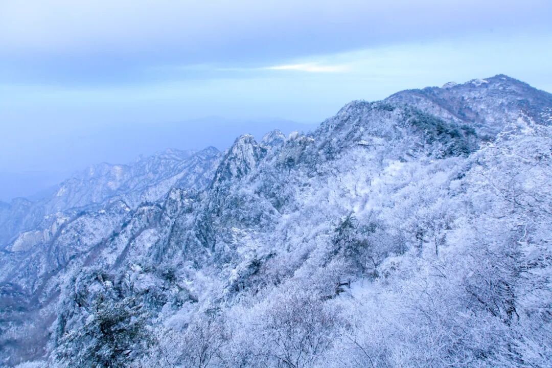 12月的尧山,是被冰雪与阳光偏爱的秘境。清晨,山间云雾缭绕,树木凝结成晶莹的雾凇,仿佛走进童话世界;正午,阳光穿透云层,洒在红褐色的山石上,与苍翠的植被相映成趣;傍晚,落日余晖为群山镀上金边,随手一拍都是刷爆朋友圈的大片。