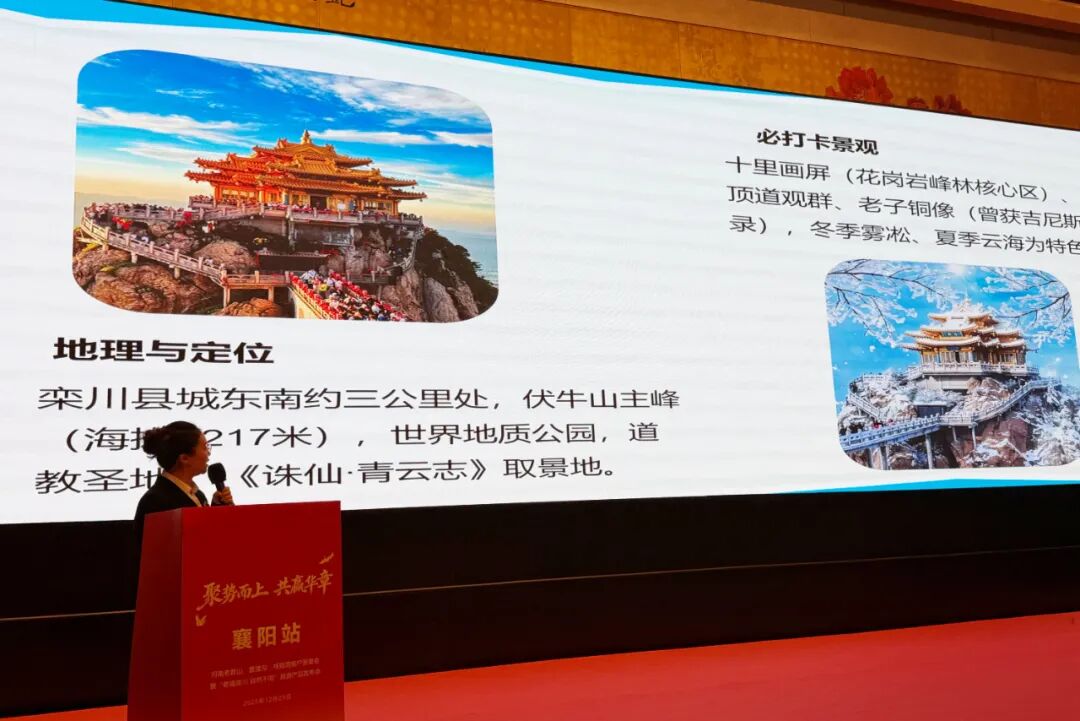 2025年12月25日,“聚势而上 共赢华章”河南老君山、重渡沟、鸡冠洞客户答谢会暨“奇境栾川 自然不同”旅游产品发布会在湖北襄阳隆重举行,来自湖北、湖南的旅行社代表、行业嘉宾齐聚一堂,共同见证这一重要时刻。