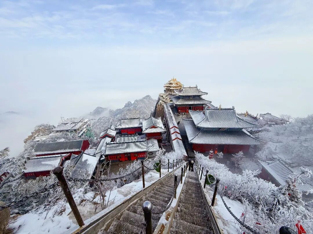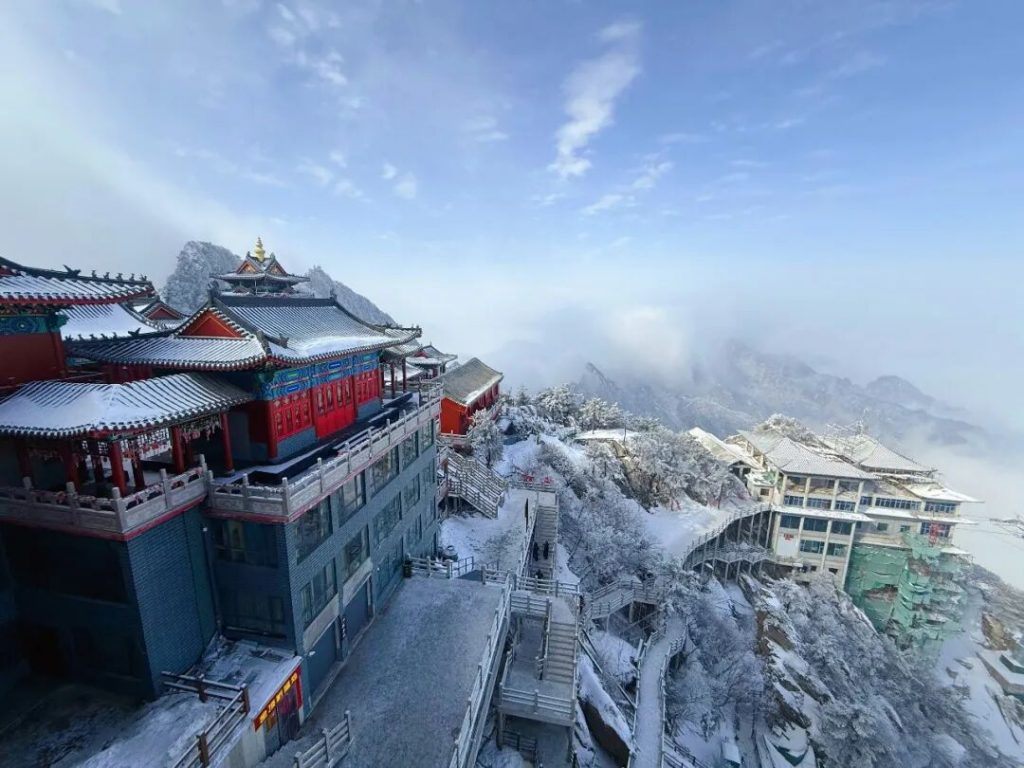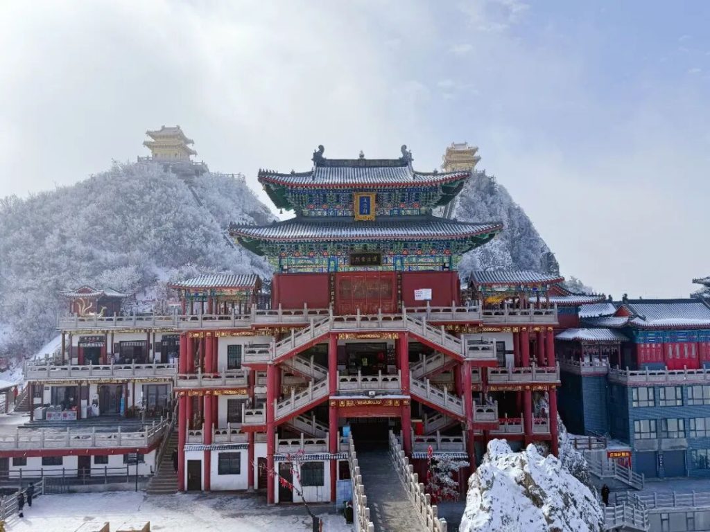 雪后的金顶道观群