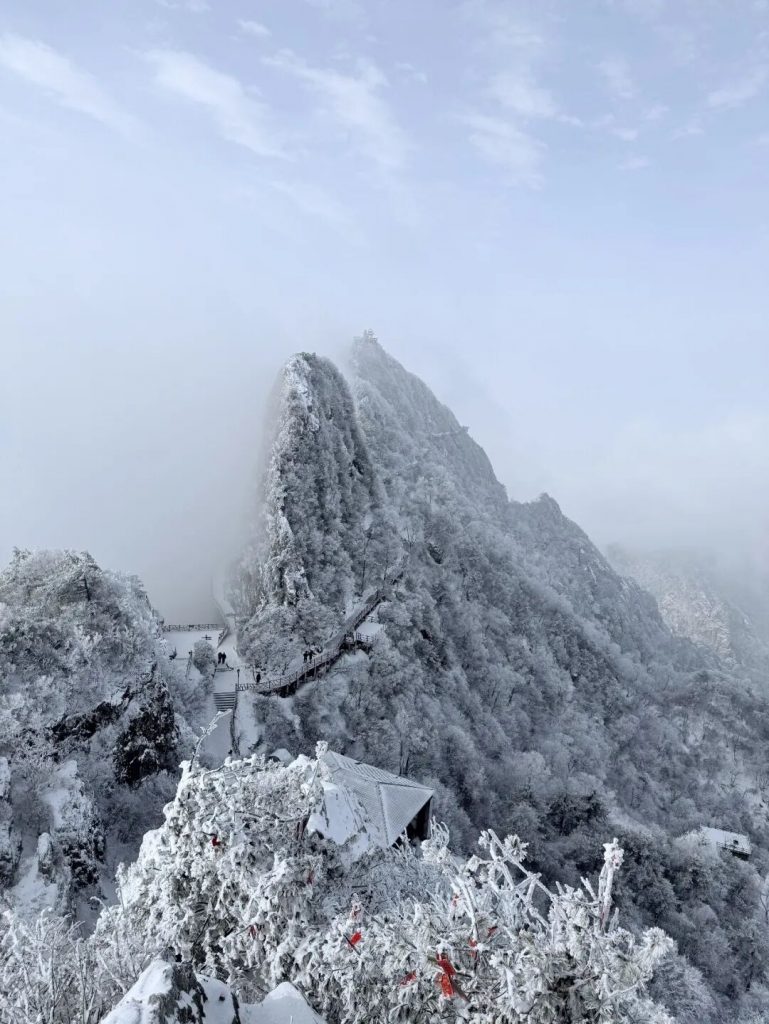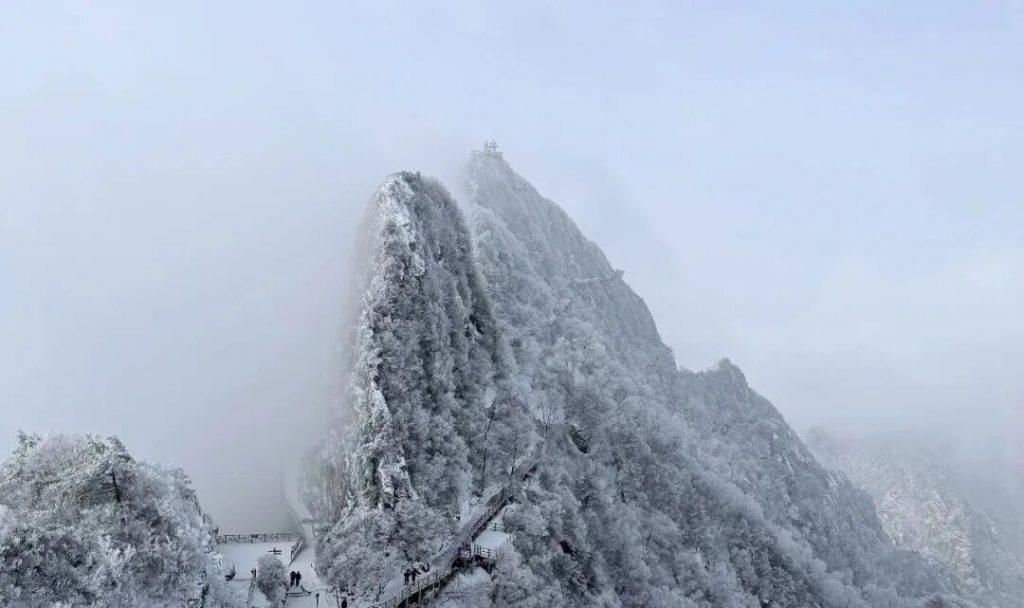 将老君山装扮成了一个银装素裹的世界