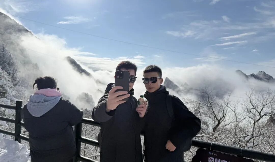 平日里险峻秀丽的峰林石海,此刻披上了洁白的雪衣,云雾缭绕其间,宛若一幅动态的水墨长卷缓缓展开。