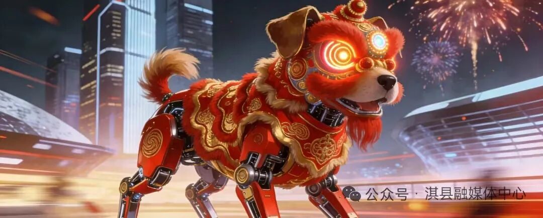 新山门广场的机器狗舞狮表演,硬核萌宠来拜年