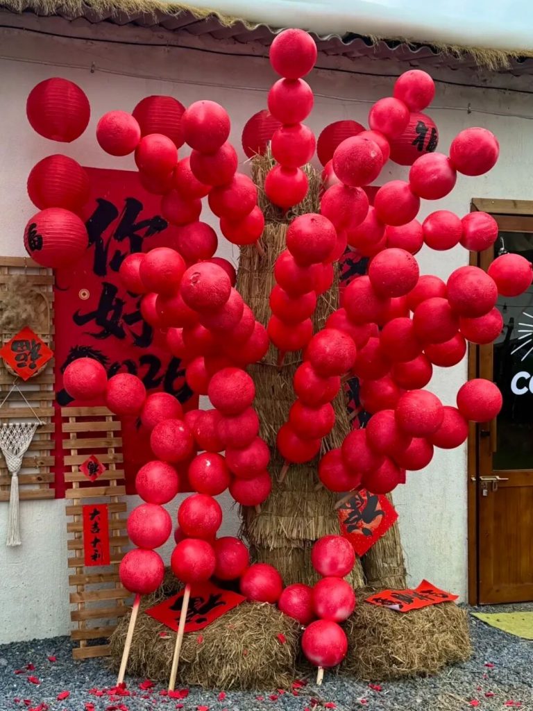 甜满云梦山!6米巨型糖葫芦树成网红打卡点