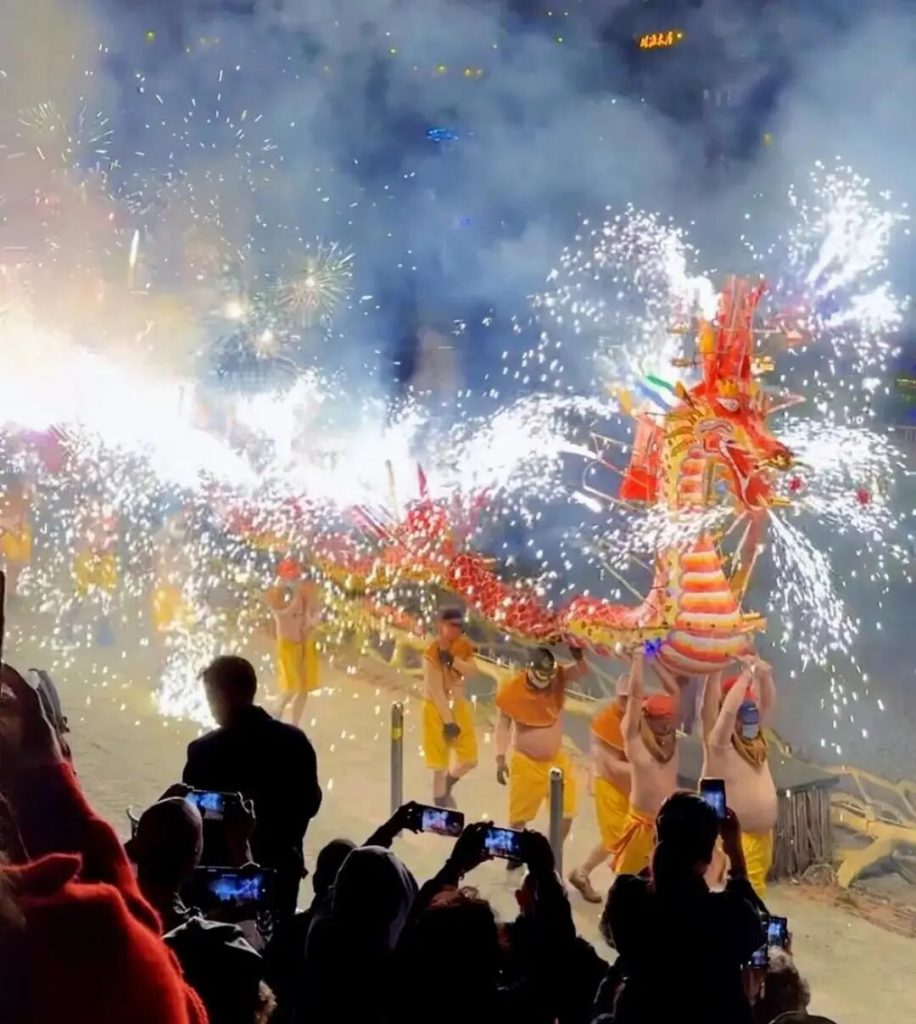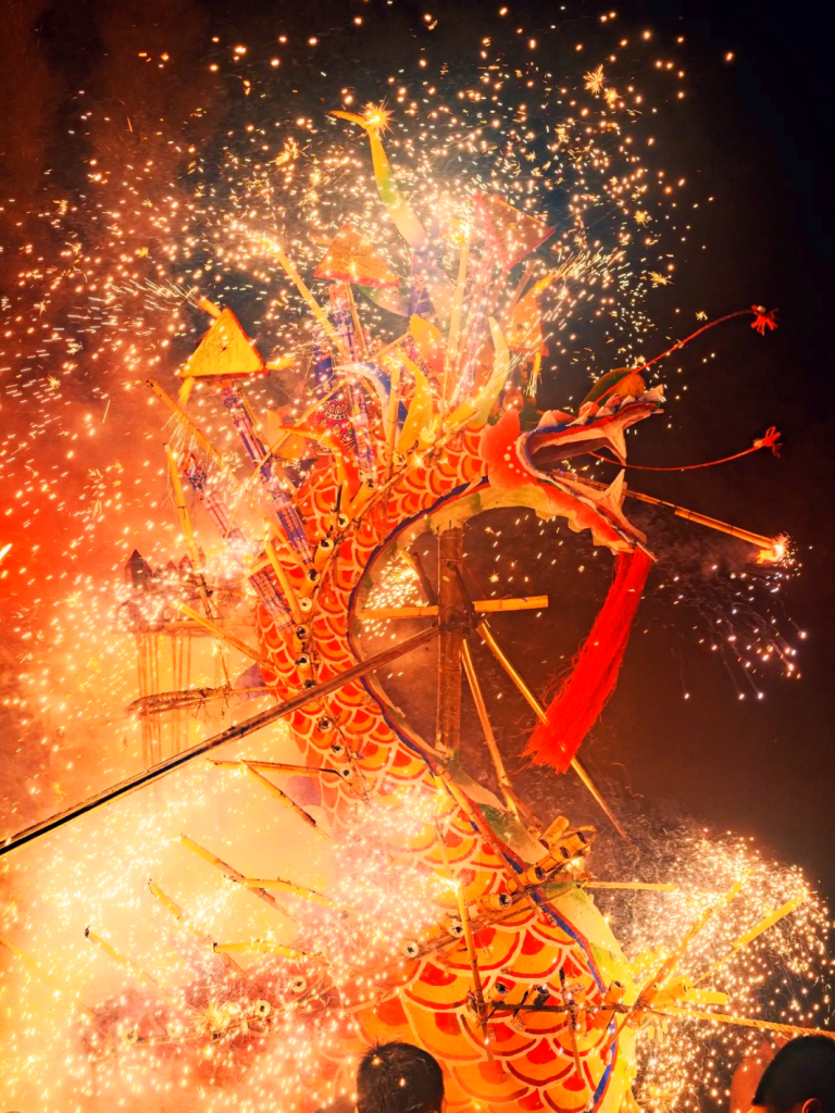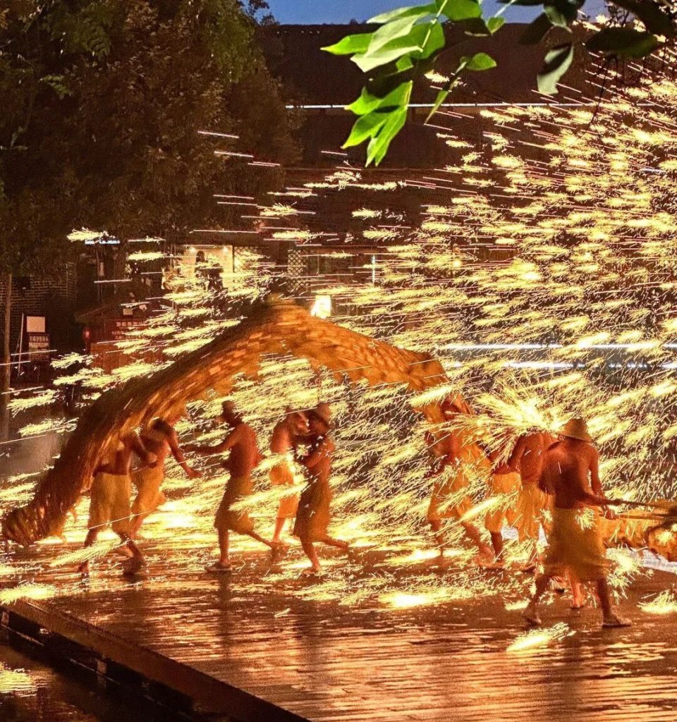 星火龙魂:夜幕降临后,群山间“火龙”腾空而起,铜花金雨漫天飞舞,龙身翻卷与星河交映,打造震撼视觉盛宴,让人终生难忘!
