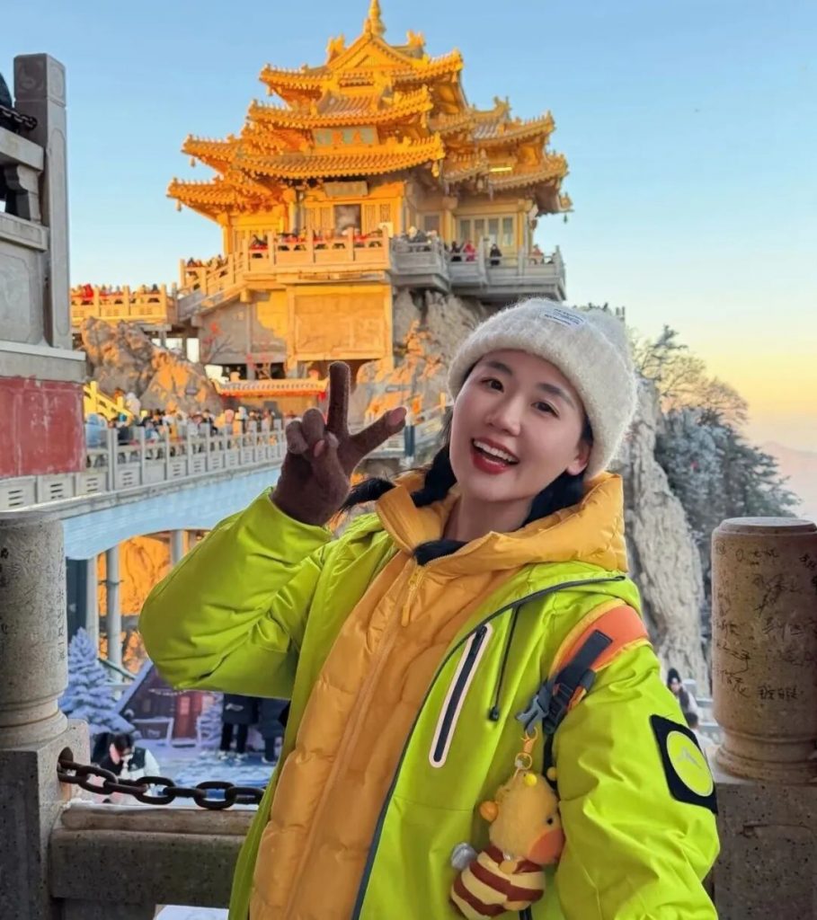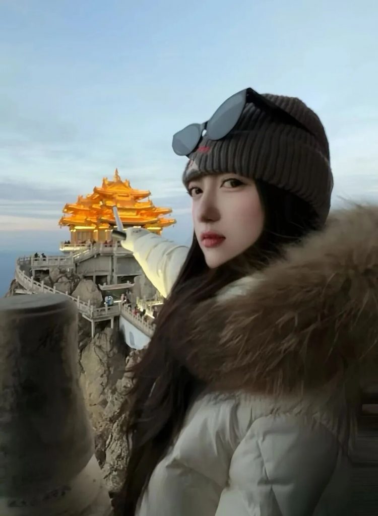 道德府后:站在金殿前,背景是雪后金顶,秒变仙侠剧主角