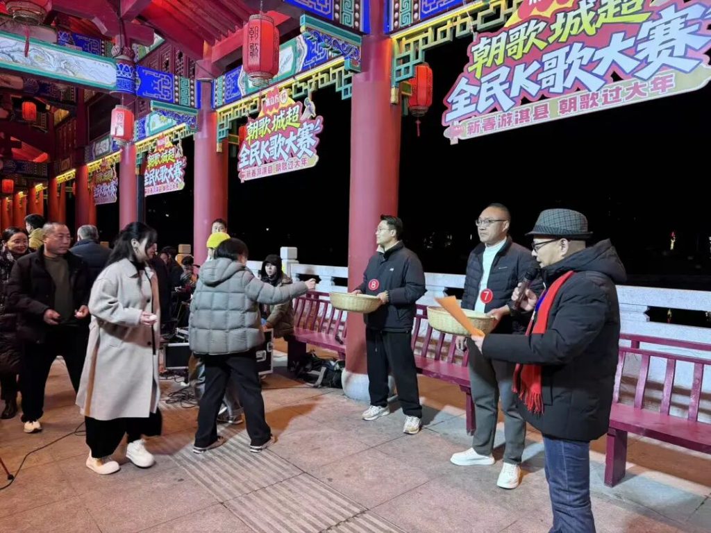 当夜幕降临,淇县的精彩依旧不停歇,朝歌老街、沬水廊桥化身梦幻新春舞台,灯光璀璨,歌声、笑声、欢闹声交织,淇县越夜越精彩。