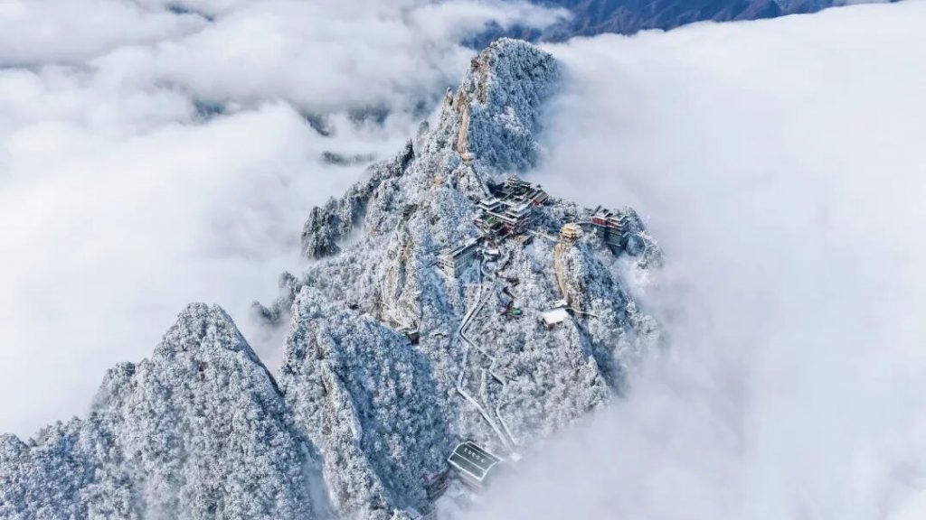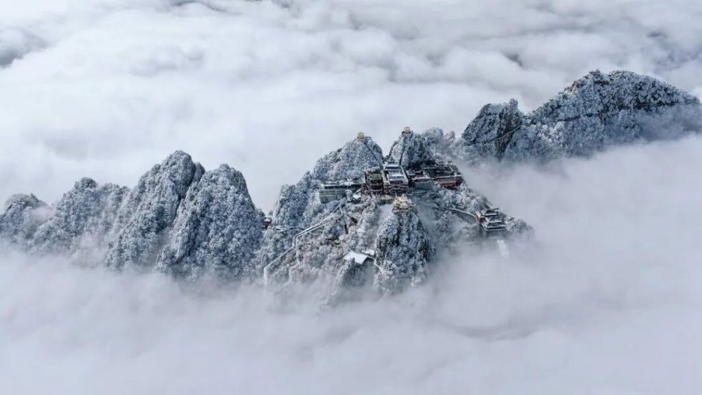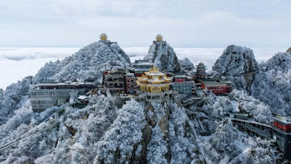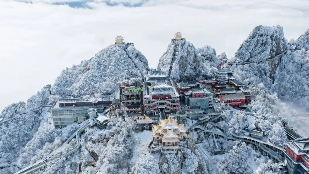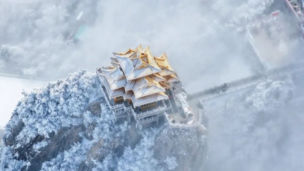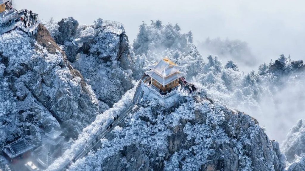 白雪覆瓦,金顶更显庄严。雾凇、雪景与古建相融,清冽仙气里藏着温润道韵,随手一拍都是壁纸级大片。