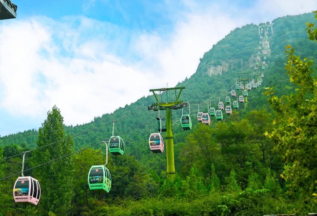 第一站游览点——登顶天坛峰,带您从高空俯瞰万亩桃花如粉色云霞铺满山峦的壮丽画卷。交通方式灵活多样,您可以选择乘坐色彩梦幻的马卡龙索道,穿行于花海之上,缓缓升空,感受春风轻抚面颊的惬意;或选择拾级而上,步行登山,在花香相伴中一步步登顶海拔829米的天坛峰。无论哪种方式,都能让您沉浸在大自然的怀抱中,欣赏桃花与万山湖碧波交相辉映的绝美风光。立于峰顶,北临黄河,您将领略“会当凌绝顶,一览山河秀”的豪迈情怀,这种视角下的桃花林,宛如一幅流动的山水画,令人心旷神怡。
