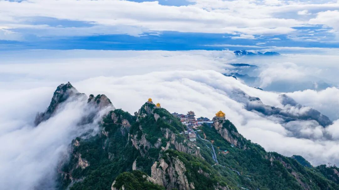 没有索道排队,你可以慢悠悠地走在十里画屏的悬空栈道上,让山风裹着连翘的花香钻进衣领;可以在金顶道观前静静坐一下午,看云海在群峰间翻涌,听鸟鸣在山谷中回响。