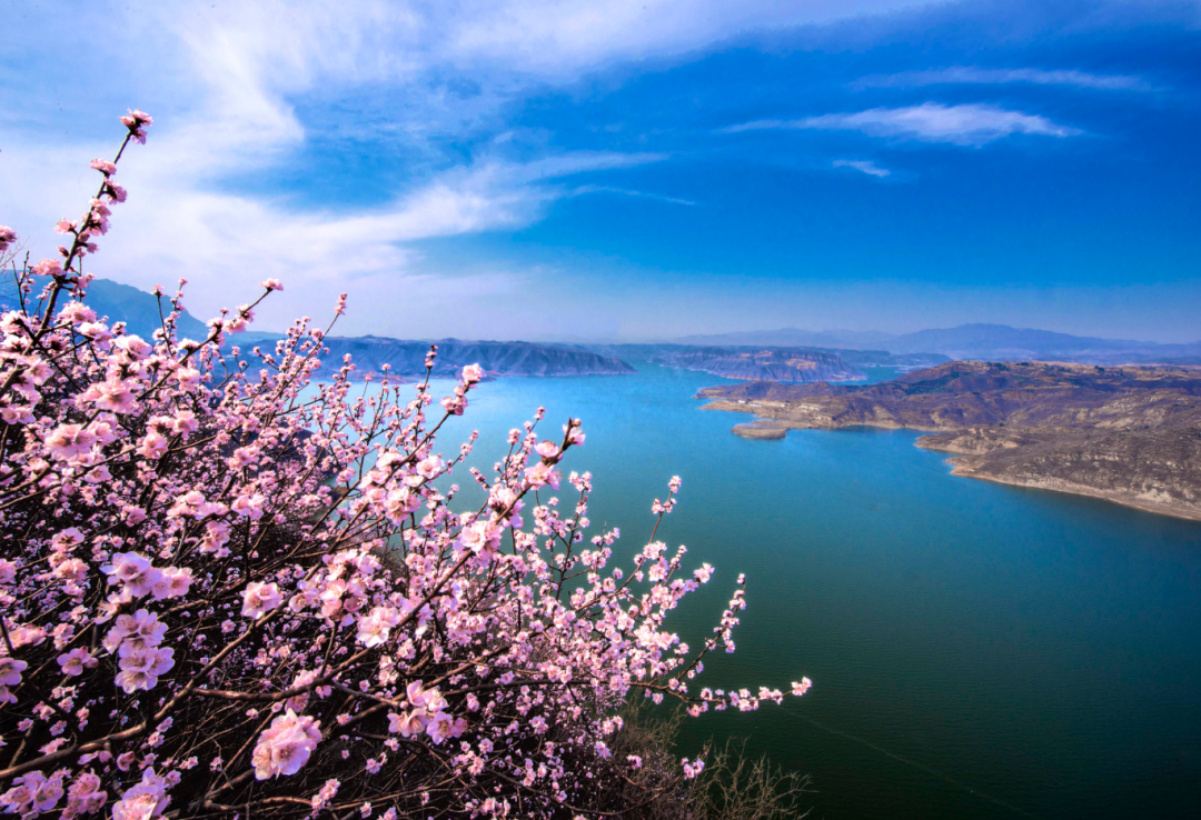 以“黄河岸边春意浓,山桃花开画中游”的诗意画卷