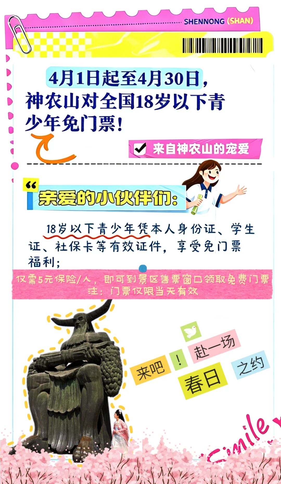 4月青少年免票畅玩,神农山春日美正当时!