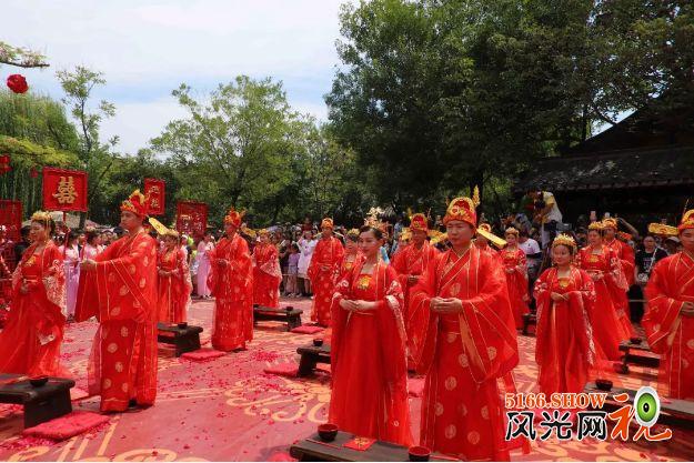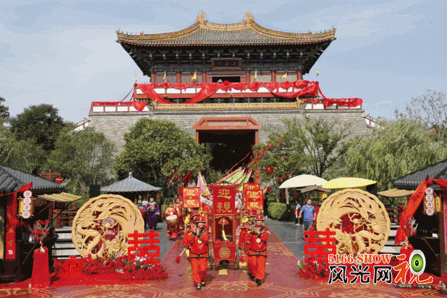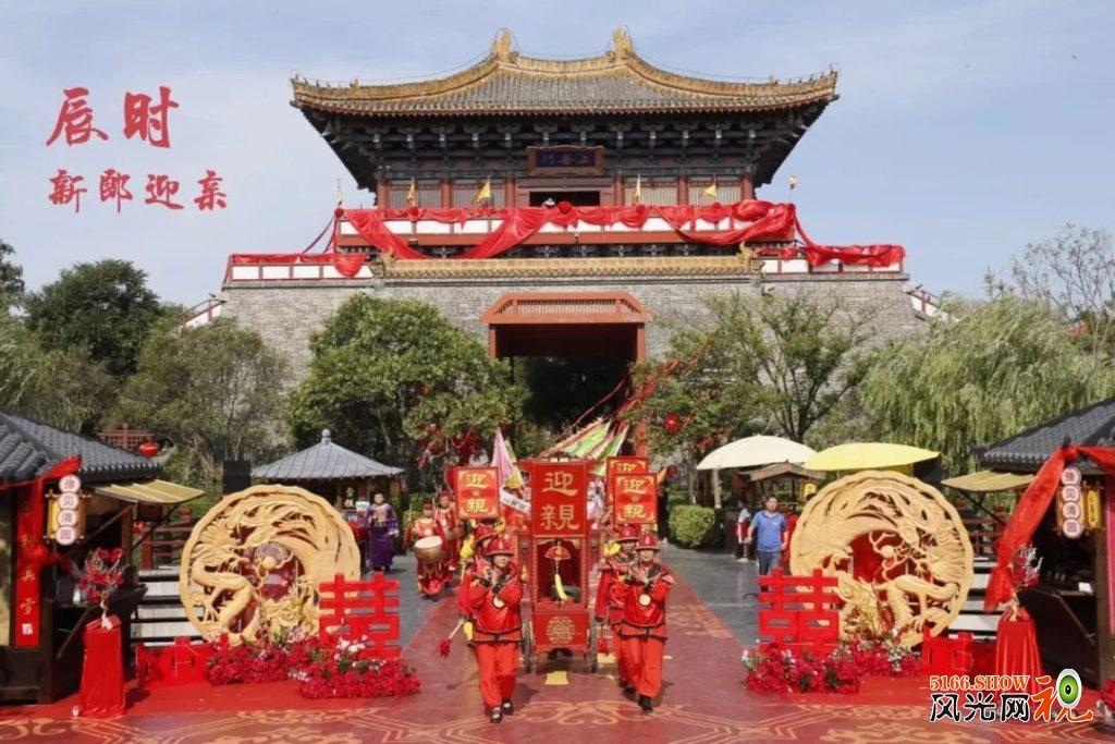 锣鼓开道、唢呐齐鸣、花船巡游、骑马坐轿、凤冠霞帔、十字披红、宋式婚书、合卺结发……成双成对的新人骑马、乘船,在万名游客的祝福中前往上善门。