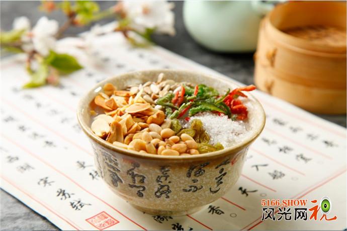 杏仁、花生、芝麻、玫瑰、葡萄干、枸杞、白糖等十几种佐料,五颜六色的满满一碗,十分诱人,搅拌均匀,舀上一口,丰富的口感让人情不自禁露出微笑~