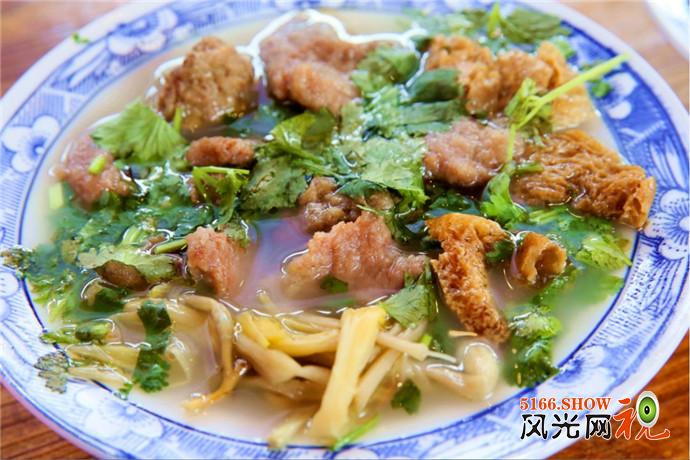 四味菜是开封具有民族特色的风味小吃,开封人喜欢当做早餐来食,焖牛腩、黄花菜、面筋和丸子放在一起,再加上鲜美的羊骨汤,吃上一口,畅快淋漓。