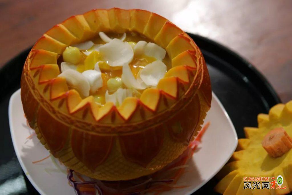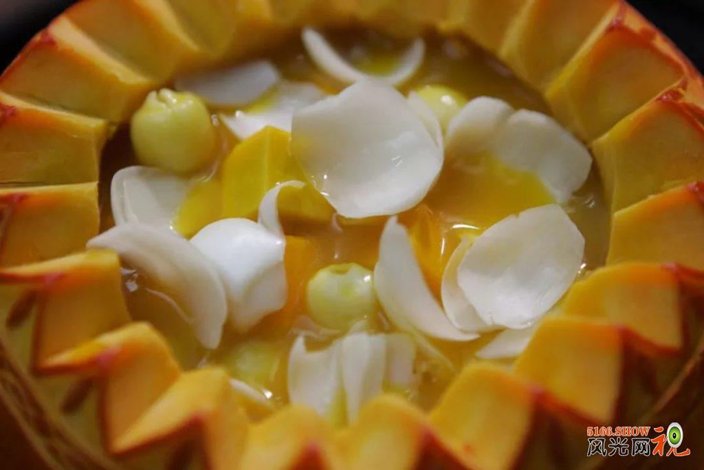 一起盛放在金瓜中蒸制而成