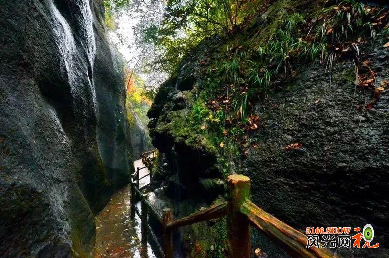 进入峡谷,风光瑰丽,可谓“无峰非峭壁,有水尽飞泉”。郁郁葱葱的林木贴崖依壁,或立或斜,扎根在岩石裂缝中,有的似飞剑刺天,有的似玉树临风,有的似金钩捞月,把一片绝壁山岩装点成人间仙境,几声鸟啼,几声蝉叫,把人带进一个远离尘世的幻境。