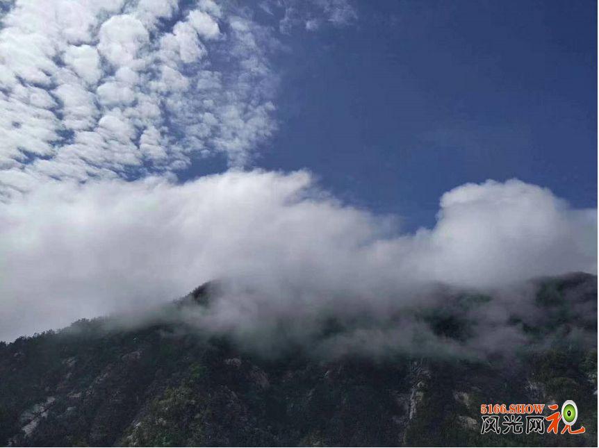 而阵雨过后的天蒙山,多云海蒙蒙,云在风的推动下像海上翻卷的浪花,却悄无声息。