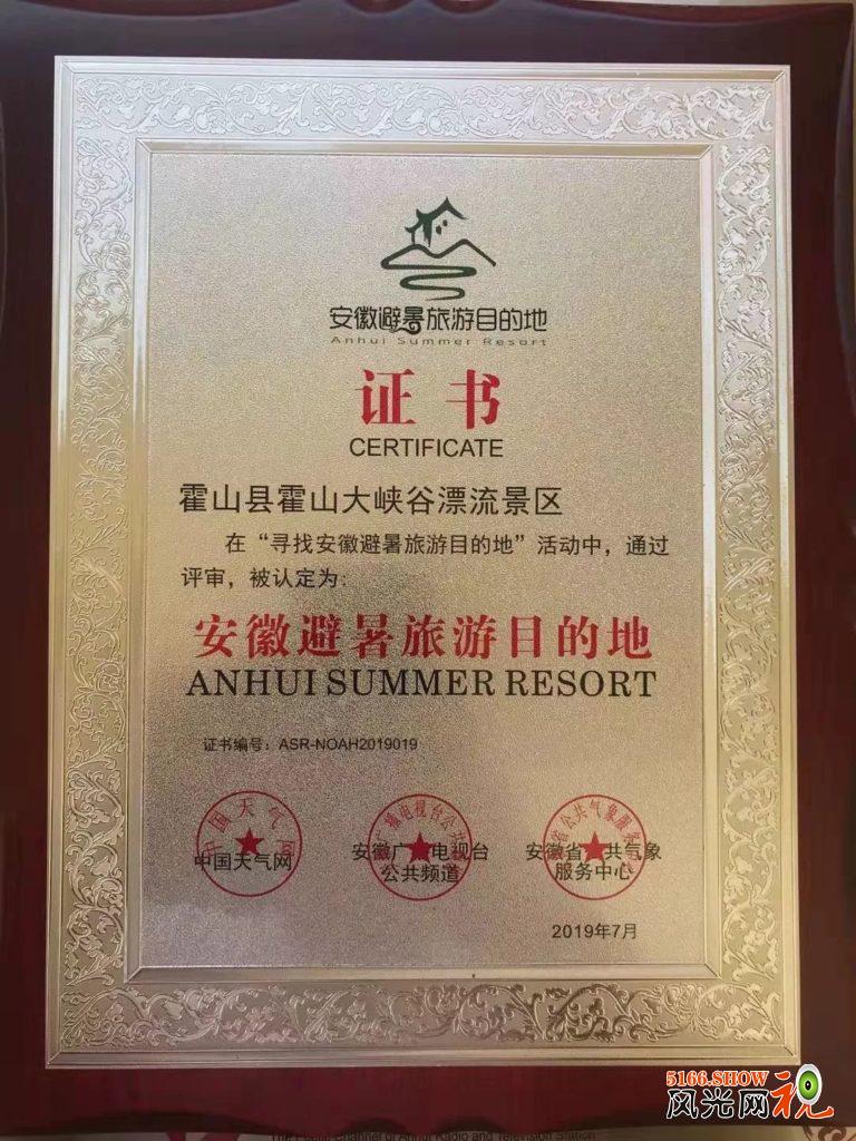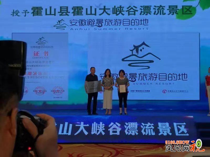 “霍山大峡谷漂流景区”荣获此殊荣。