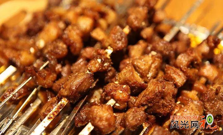 串上切好的新鲜食材,刷点油,撒上孜然。炭火上香滋滋的烤串把食客们的馋虫瞬间勾起!