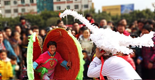 街上的民俗文艺表演队粉墨登场