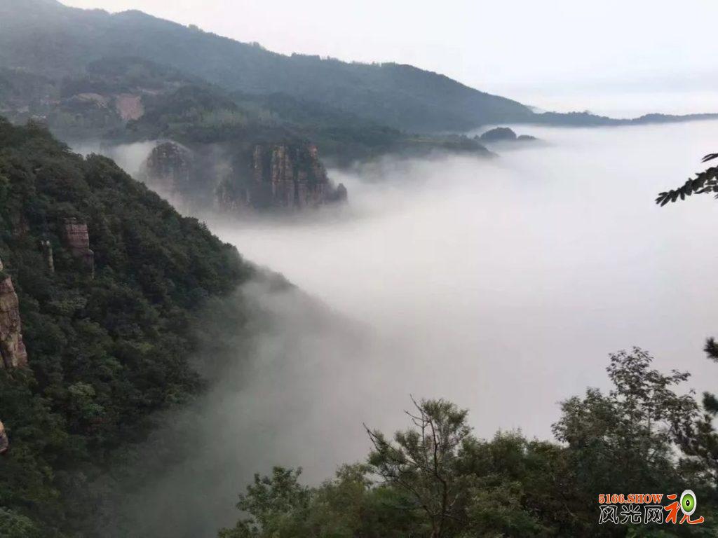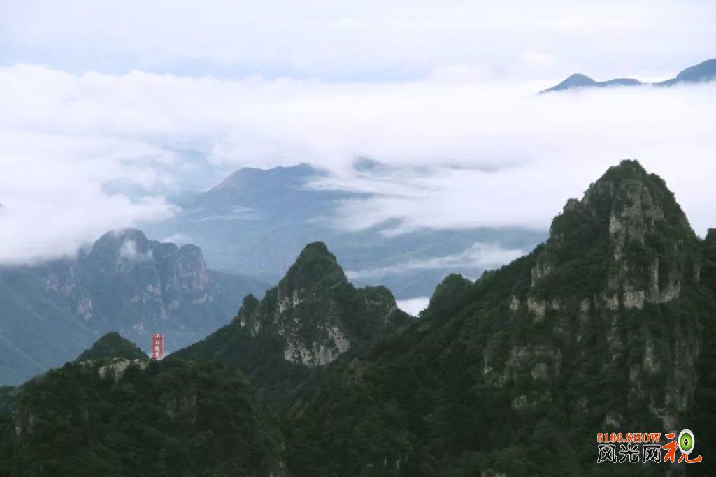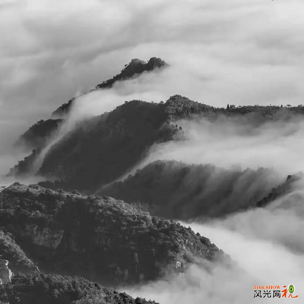 轻盈的云海隙处,看得见山下晶晶的水珠