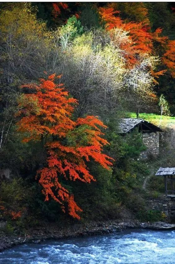 毕棚沟附近的红叶,原生态自然,仿佛是山中的宝藏一般,几乎是一抬眼,那醒目的红就美得人失了言语。