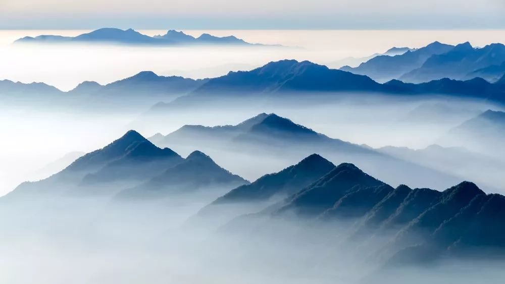 层层叠叠,千山暮云,苍茫雄浑,美成一副壮丽山水画卷