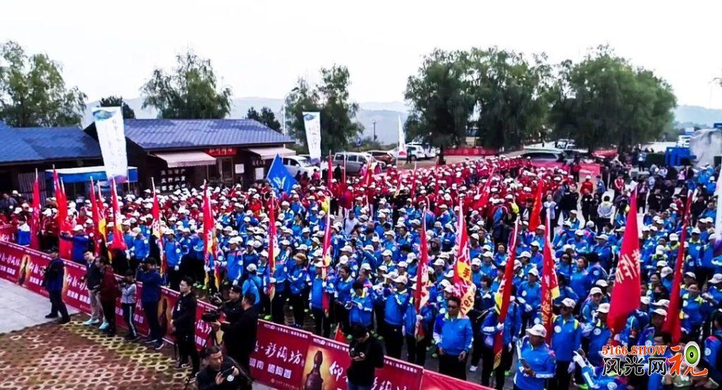 活动现场人头攒动、彩旗飘扬,