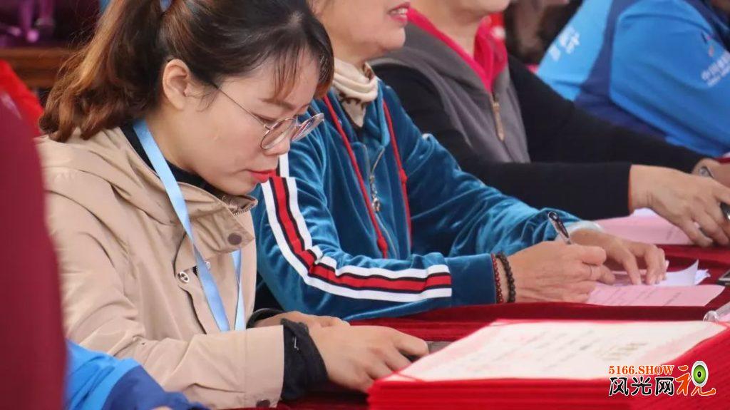 开封市广场健身操舞协会会长王建女士宣布进入决赛的十二支队伍