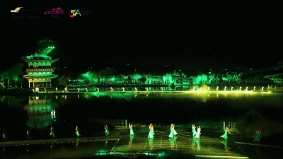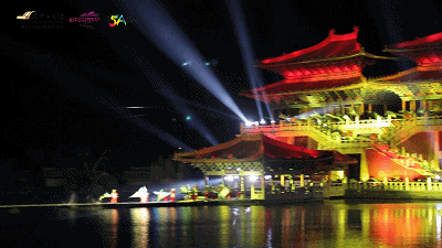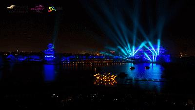 就是一场在清明上河园内景龙湖畔上演的视觉盛宴。