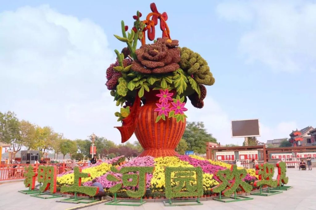 清明上河园在百万株菊花的衬托下,