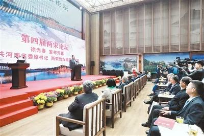 徐光春宣布第四届两宋论坛开幕并讲话。他围绕高度重视宋史研究的重要性和必要性,宋史研究的复杂性和敏感性,宋史研究要加强合作等问题进行了深入而生动的阐述。他指出,要充分认识宋史研究的历史意义和现实意义,充分调动各方面积极性,加强以开封为北宋研究中心、以杭州为南宋研究中心建设,统筹推进,动员社会力量广泛参与,发挥好宋史研究“国家队”主力军作用,并与地方研究结合起来,形成强大合力。黄河流域生态保护和高质量发展作为重大国家战略,为开封提供了新的历史发展机遇,要抢抓机遇、深入研究、积极融入。