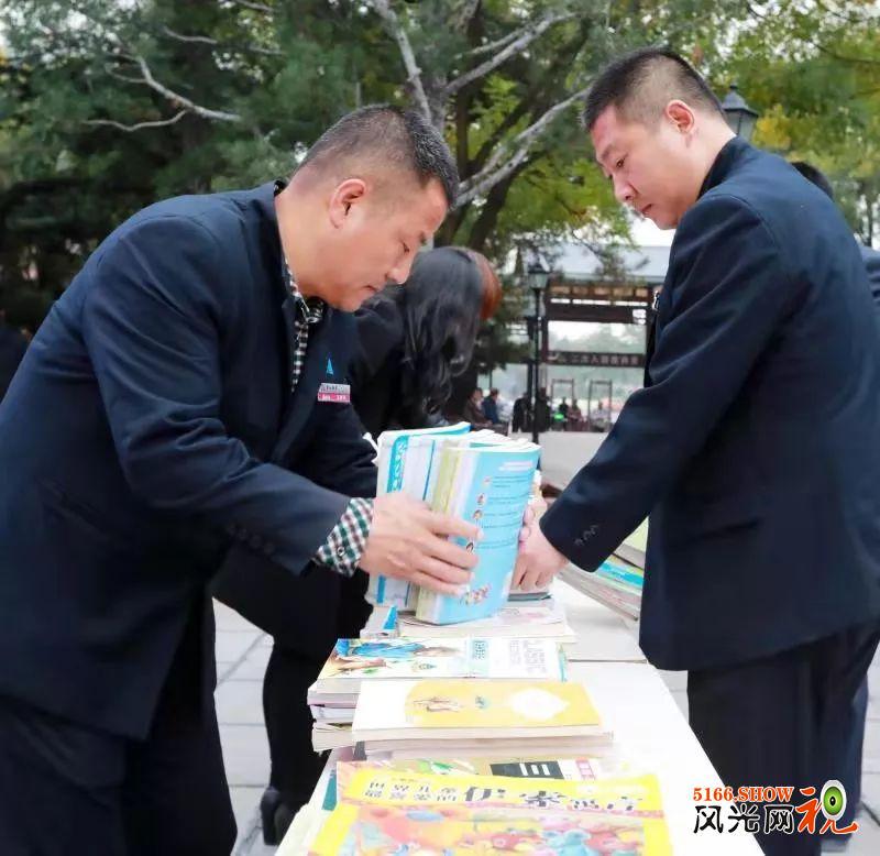 10月19日一早,相府景区全体员工聚集在御书楼广场为留守儿童爱心捐书。