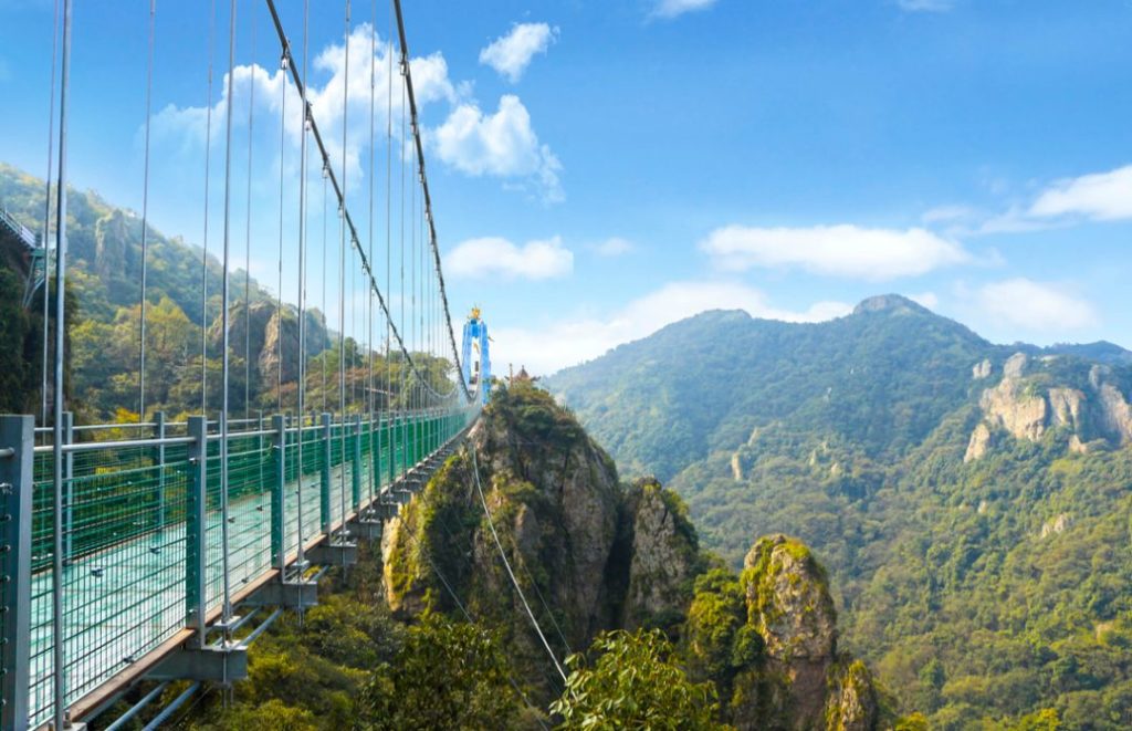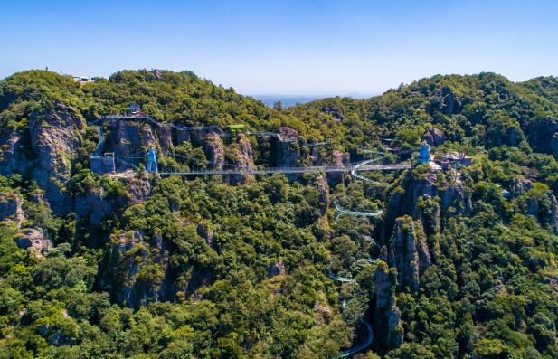 马仁奇峰森林高空玻璃漂流建在雄伟的主峰,最大垂直高度180米,环形盘旋而下。