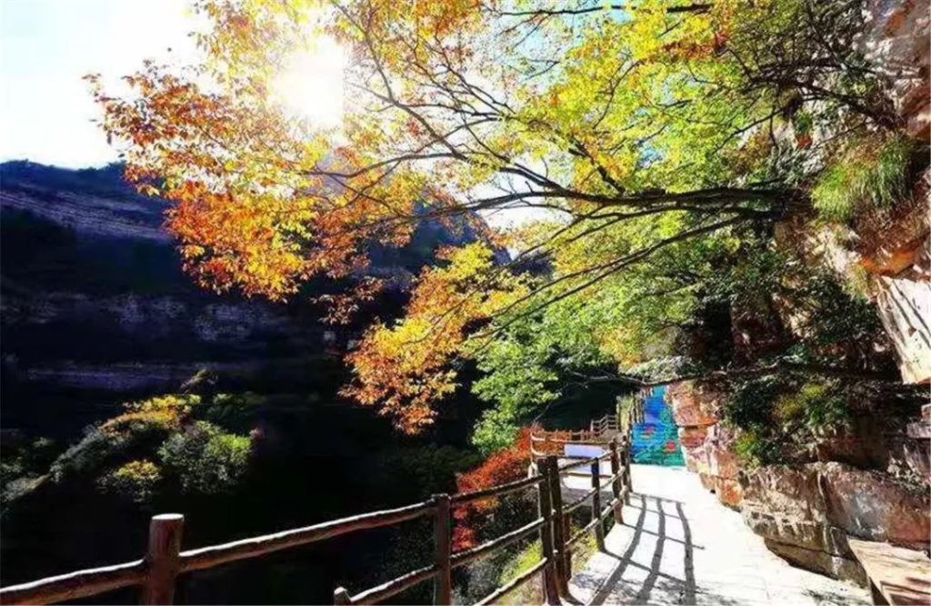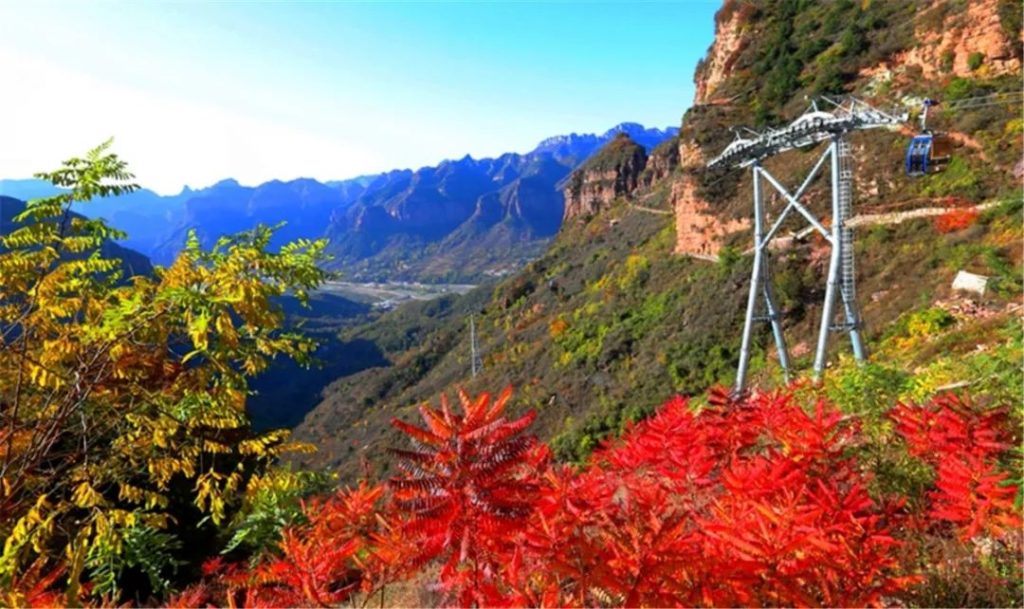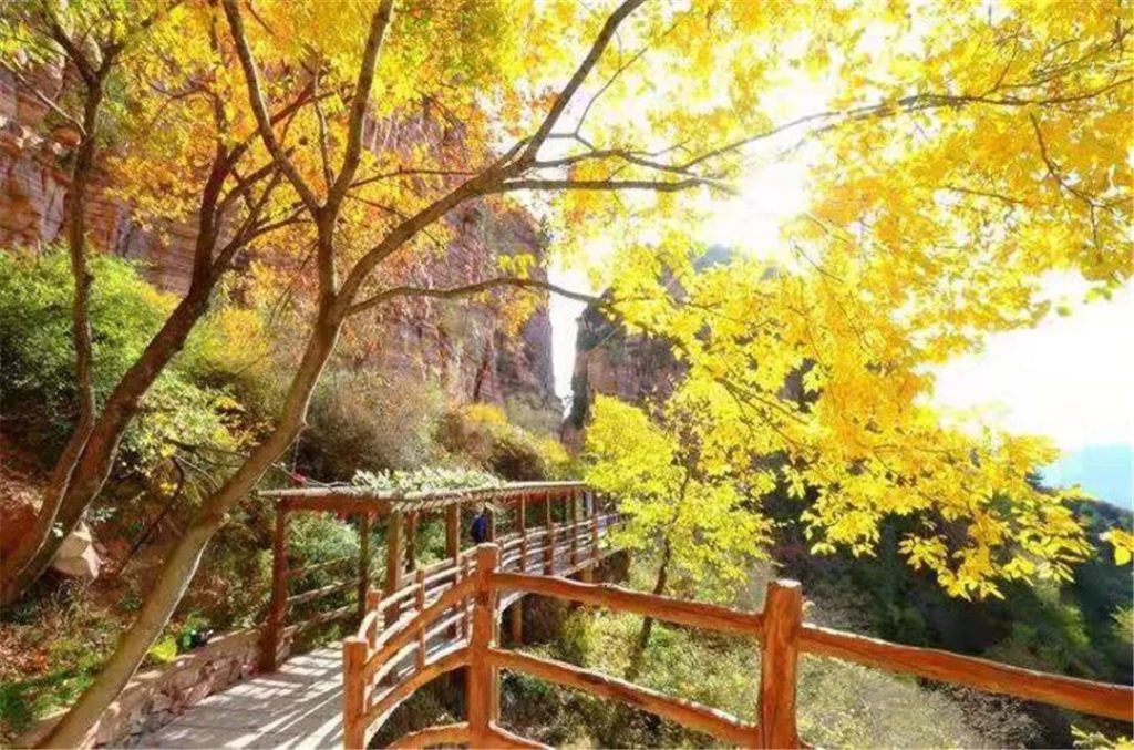 走过春,走过夏,十一月伊始,东太行已入深秋。当秋风掠过群山。群山在一夜间仿佛换上了五彩的外衣,红的、黄的、绿色……都市的秋天已经有要结束的迹象,深秋的东太行,仍在秋风中舞动着美丽的身姿,东太行的秋日盛典才刚刚开始! 趁着秋高气爽,想要赶快遇见东太行的深秋,不妨乘着缆车上山,沿途绵延的彩林,就像顽皮的秋风打翻了颜料盘,满眼风景,美的绚丽,美的朦胧,美的动人心魄! 也可以沿着游步道,慢慢走,慢慢地欣赏东太行深秋,行走在平缓的游步道上,在秋风的吹拂下,难得心也平静下来,偶尔还有一两片飞扬而下的叶子,满世界都是五彩缤纷,仿佛误入了一个秋日童话中,满足了你对秋日的憧憬和幻想, 不知不觉,就走到东太行的云端栈道,在这里赏秋又是另一番滋味。嫣红的太行石在深秋颜色更加艳丽,似与周围的秋日相互照映,散发出温暖的气息,美极了!俯瞰山下,层林尽染,斑斓的秋色真的能看花人眼! 走过如何门,路过耸立的太行一柱,看过与秋日相映的平静的天镜湖,然后就到了东太行的最高峰。果然这里看秋景是最棒的!秋日的火焰迅速蔓延到远处的群山,恣意洒脱的扩展自己的地盘,那种野性的、华贵的大美,深深地震撼人心! 如果你被生活的压力压得透不过来气,如果你想寻一个地方洗净尘霾,不妨来东太行,这里有深秋,有山有水,有你想要的诗和远方,这样的东太行,你可喜欢?