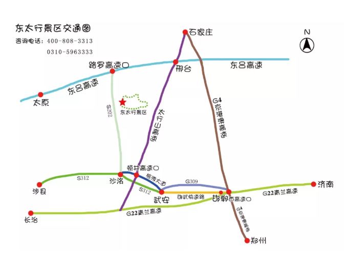 邢台高速:G4京港澳高速邢台方向转G2516东吕高速路罗出口下,左转进入S202行驶30公里即可抵达。 邯郸高速:太行山高速武安顿井出口下,沿S312转S202行驶20公里即可抵达。