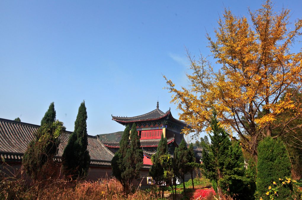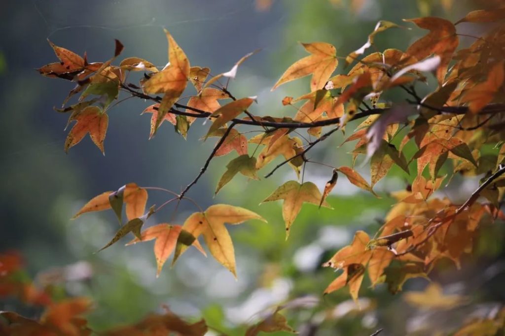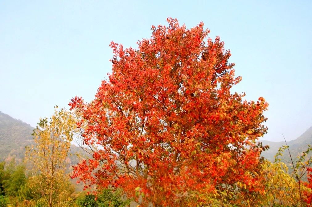 等到上了山顶,放眼望去,从这山到那山,漫山秋色,各类品种由绿而黄、由黄转红,将西九华全副武装,不禁赞叹大自然造物的神奇。