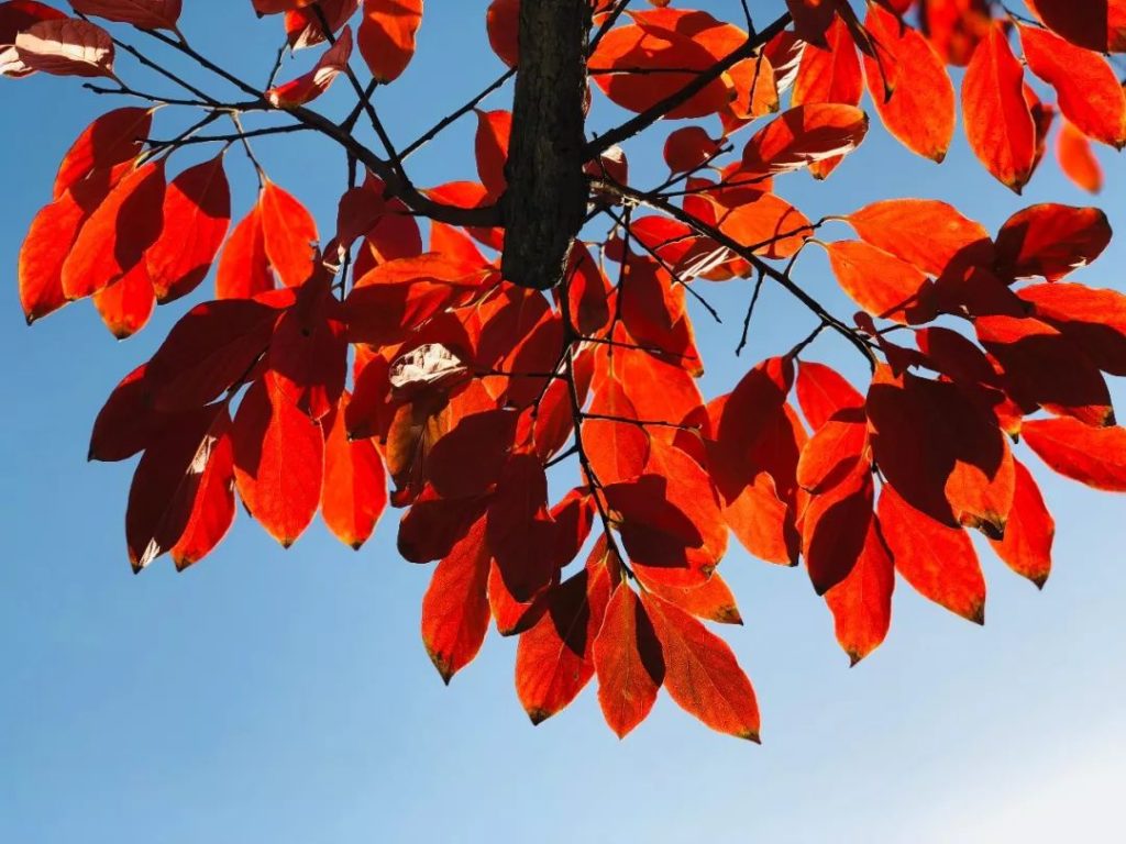 抬头看红色尽染、秋意浓烈