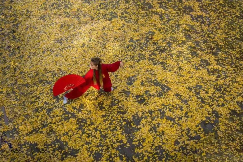 其中有一个重要原因:杨树们不团结,有的叶子变黄,有的叶子还绿着,黄的不纯;银杏们团结,说变黄,大家一起黄,拍起来一片金黄,没有其他杂色。